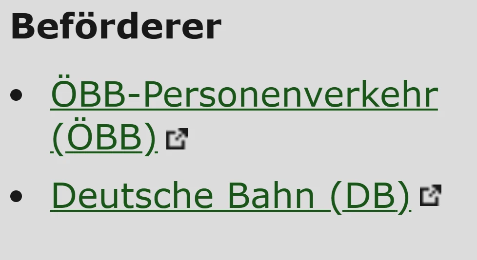 D’autres opérateurs comme LeoExpress et RegioJet circulent également en Slovaquie, mais n’acceptent pas les Billets FIP. Dans les horaires, ils sont abrégés LE et RJ (à ne pas confondre avec RJ pour Railjet). En cas de doute, vérifiez l’opérateur via son site ou via Bahn.de.